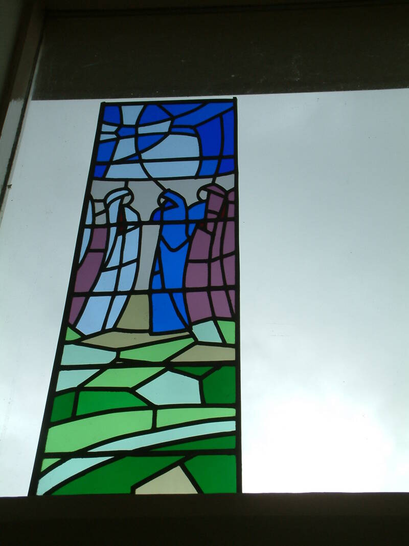 In plaats van vitrage is het ook heel mooi om een afbeelding van glas in lood of Tiffany voor het raam te zetten om zo toch een beetje de inkijk van buiten af te verminderen.